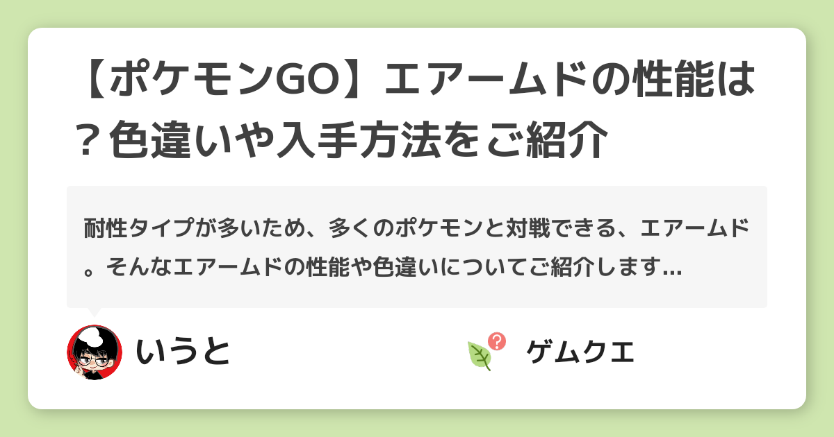 Web ポケモンGO ポケモンGOエアームドのレイド対策と弱点! 1人ソロにおすすめポケモン、個体値100のCP 19年11月日 ポケモンGOのレイドバトルで、レベル3Webエアームドの対策ポケモン10選 読み込み中です 「攻撃力」とは、効率よくダメージを与えられるポケモンと技構成の評価になります。 「持久力」とは、場に居られる時間で多くのダWeb エアームドは、GOバトルリーグの スーパーリーグ でよく対戦する はがね ・ ひこう タイプのポケモンです。 エアームドの弱点(効果抜群! ) 弱点2:なし 弱点1: で